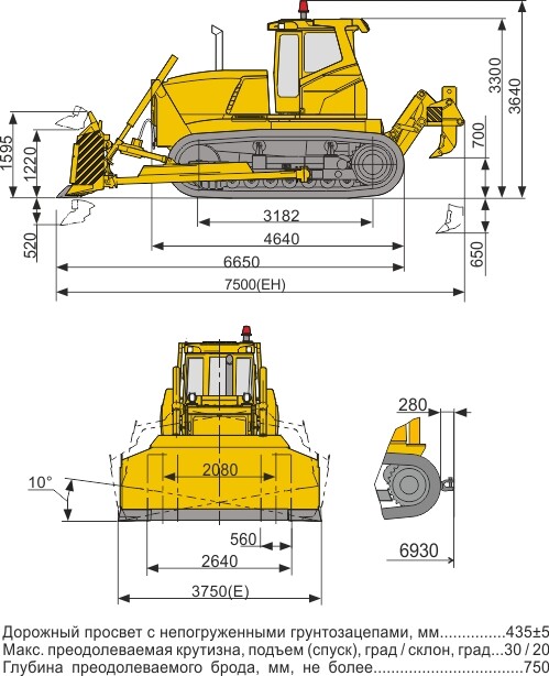 Бульдозер может эксплуатироваться в условиях умеренного и холодного климата при температурах окружающего воздуха от плюс 40 до минус 50° С, при высокой запыленности, а также в условиях тропического климата (тропическое исполнение).