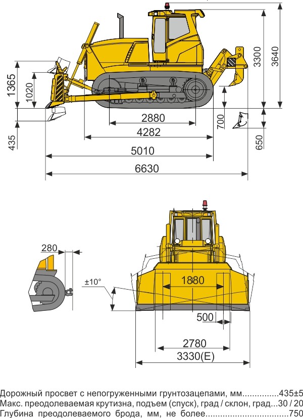 Предназначен для выполнения в агрегате с бульдозерным, бульдозерно-рыхлительным и прицепным оборудованием землеройно-транспортных работ в строительстве, в горнодобывающей промышленности, в мелиорации, ирригации и других отраслях.