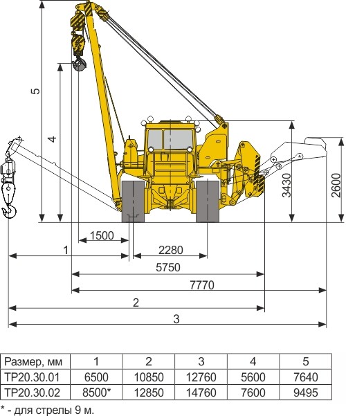 Тип трубоукладчика, стрела 7 / 9 м. ТР20.30.01 / 02